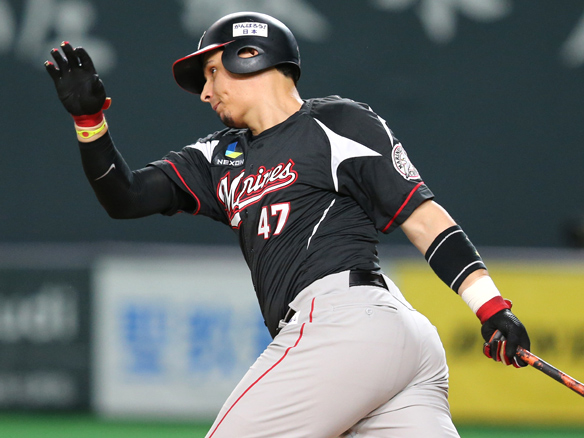 投手 大嶺祐 3番 陽 右安 ライトへのヒット |