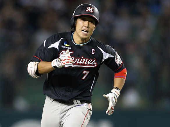 1番 栗山 中安 センターへのヒットで出塁 1塁 |