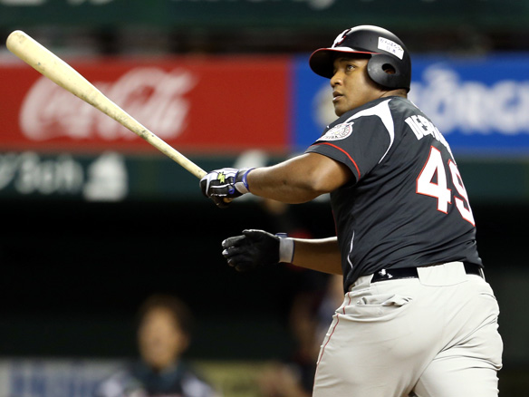 勝ち越しの2ランを左翼席へ叩き込むデスパイネ!
