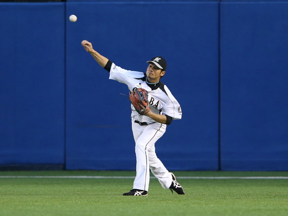 伊志嶺が素早い送球で二塁走者の進塁を阻止