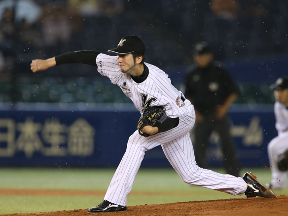 投手 岡本洋 5番 角中 右飛 内角の真っ直ぐを打つもライトフライ 1アウト |