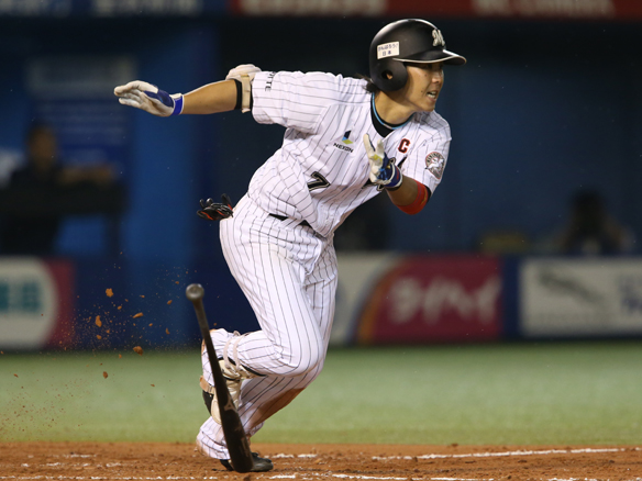 投手 石川 1番 栗山 中安 センターへのヒットを放つ 1塁 |