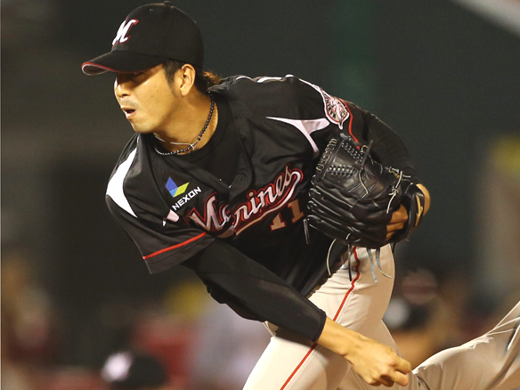 投手 大嶺祐 7番 嶋 右安 ライトへのヒットで出塁 1塁 |