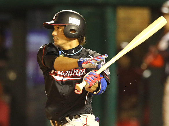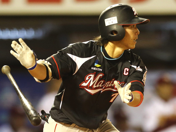 6番 角中 左安 レフトへのヒットを放つ 1塁 |