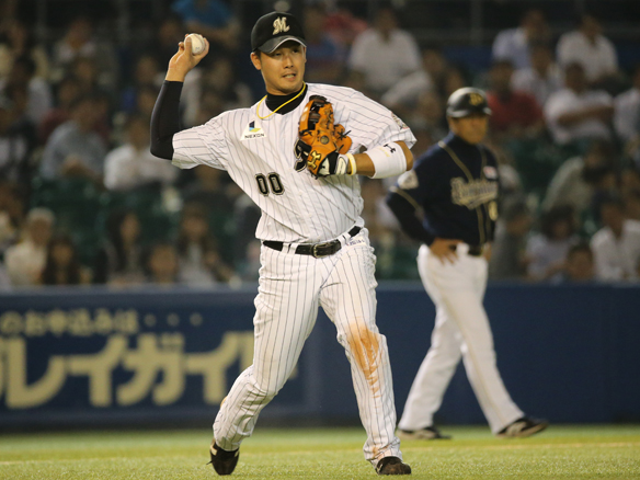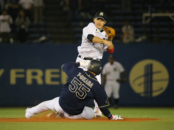 3番 鈴木 右中三 カウント1-2からセンターへのタイムリースリーベースでロッテ先制! ロ1-0オ 3塁 ![]() 1
