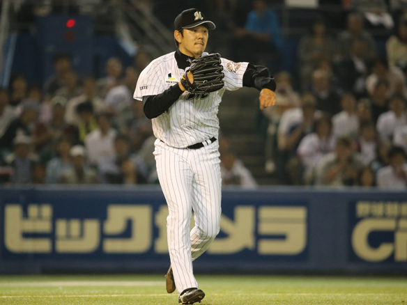 1番 平野恵 見三振 外角の真っ直ぐに見逃し三振 3アウトチェンジ |