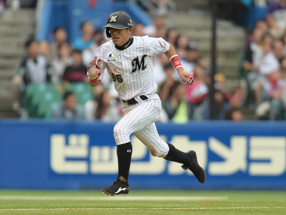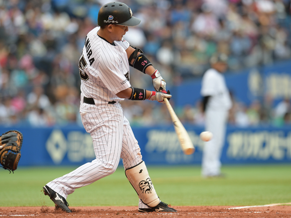 1番 平野恵 左安 レフトへのヒットで出塁 1塁 |