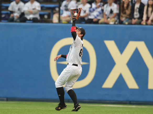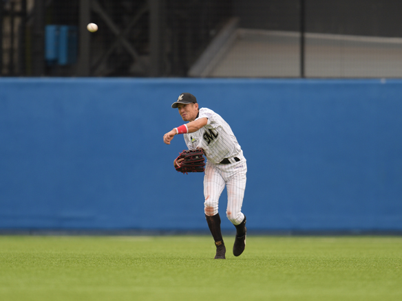 岡田が正確な送球で二塁走者の生還を阻止!!