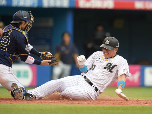 ロッテ先制! ロ1-0オ 2アウト |