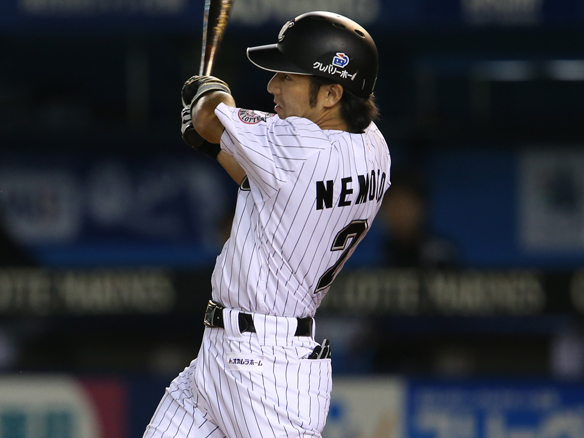 6番 根元 右中三 ランナー2,3塁の0-1からライトへのタイムリースリーベース! ロ4-0日 3塁 ![]() 3