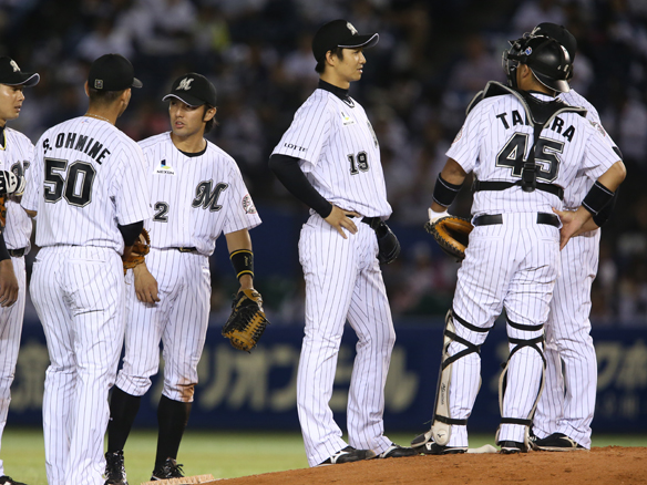 投手 武田勝 投手交代:武田勝→鍵谷 金子誠がショートの守備につく 谷口がレフトの守備につく 守備変更:中田レフト→ファースト 守備変更:尾崎→サード |