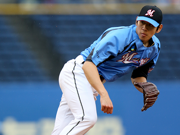 投手 イ・デウン 3番 岡島 遊ゴ 外角の真っ直ぐを打つもショートゴロ 1アウト |