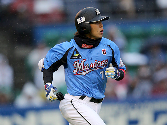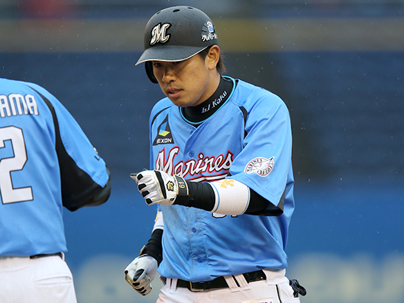 3番 角中 中安 センターへのヒットで出塁 1塁 |