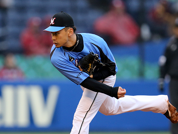 投手 イ・デウン ピッチャーイ・デウンに代わって大谷がマウンドにあがる |