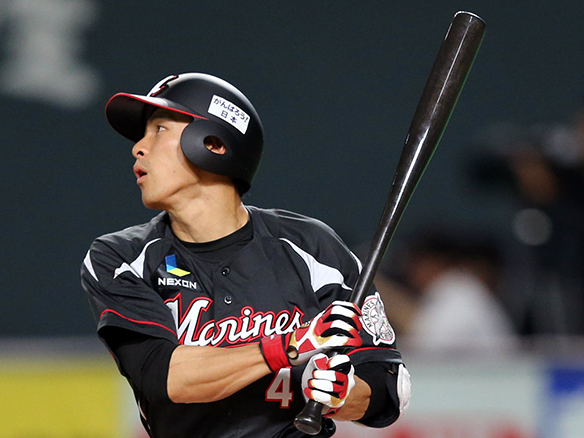 投手 香月良 2番 田中賢 左安 レフトへのヒットを放つ 1塁 |