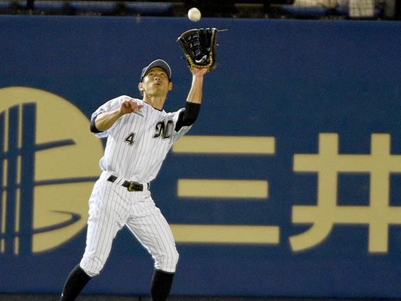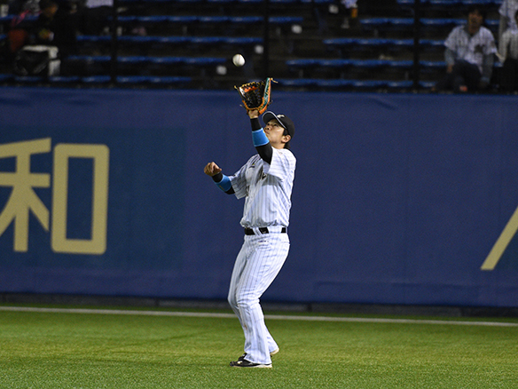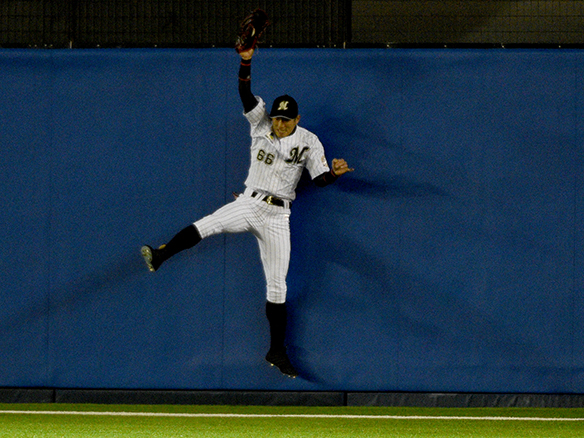 大きな打球をキャッチしファインプレーを見せた岡田!!