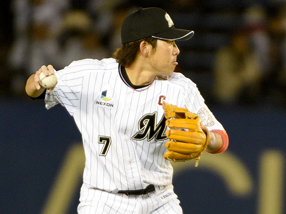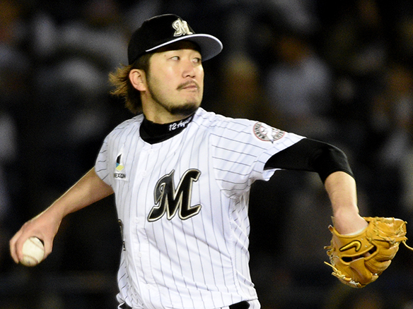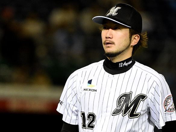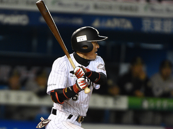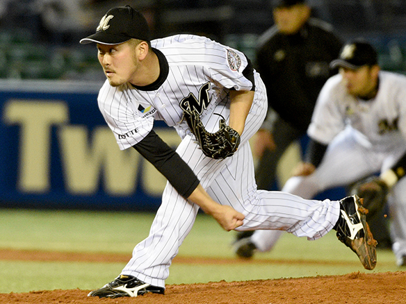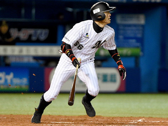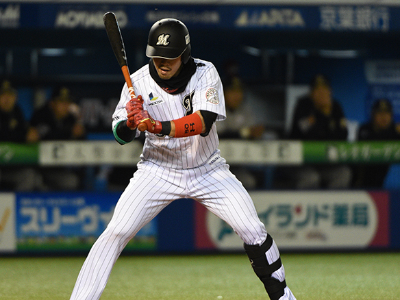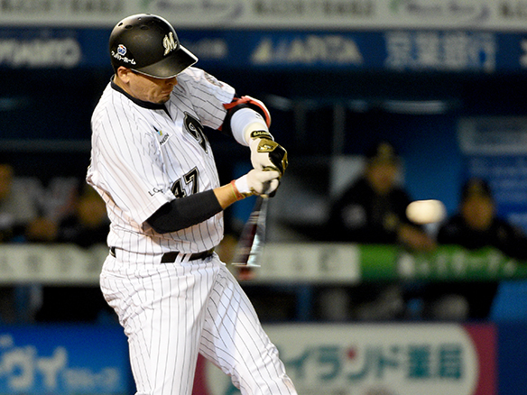 5番 坂口 四球 内角のストレートを見送りフォアボール。ロッテ、満塁のピンチをまねく 満塁 |