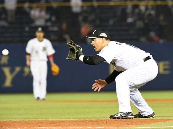 3番 角中 捕犠 見事送りバントを決める 1アウト2塁 |