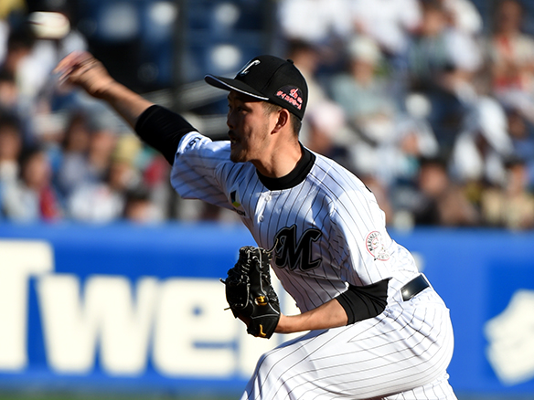 投手 上沢 3番 角中 左飛 内角のスライダーを打つもレフトフライ 1アウト |