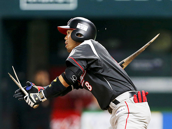 5番 李大浩 中安 センターへのヒットで出塁 1塁 |