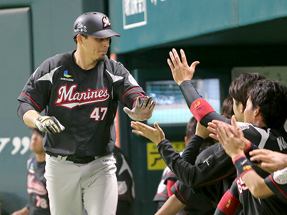 投手 涌井 守備交代:ファースト大嶺翔 |
