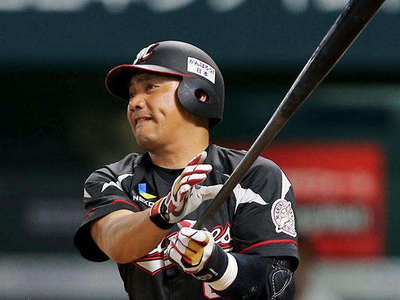 5番 今江 右犠飛 ランナー2,3塁の1-2からライトへの犠牲フライを放つ ソ2-6ロ 2アウト3塁 ![]() 1