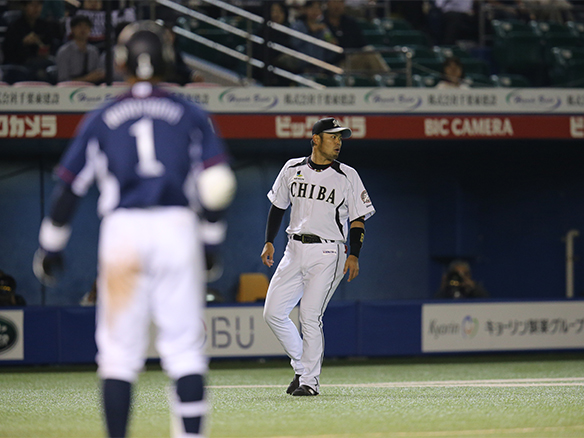 投手 牧田 鬼崎がショートの守備につく 守備変更:脇谷→ファースト |