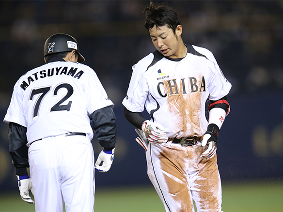 2番 栗山 中安 ランナー2塁の1-1からセンターへのタイムリーヒット ロ3-6西 1塁 ![]() 3