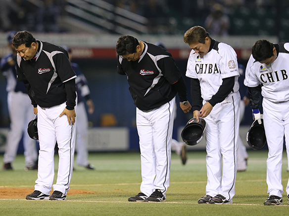 敗戦を喫し駆けつけたマリーンズファンに挨拶をする伊東監督