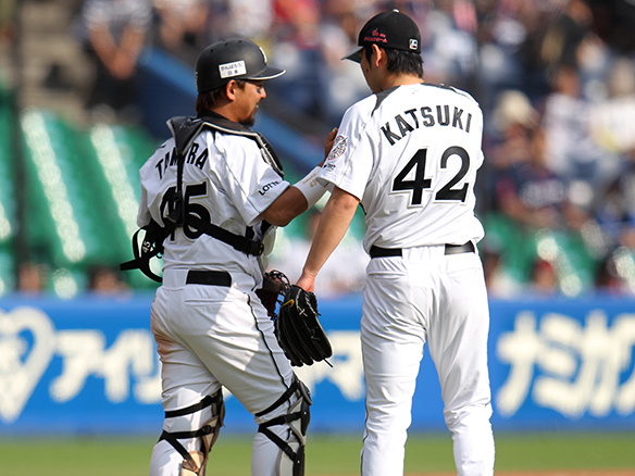 4番 中村 四球 内角のストレートを見送りフォアボール。ロッテ、満塁のピンチをまねく 満塁 |