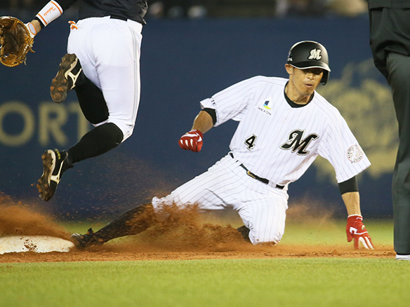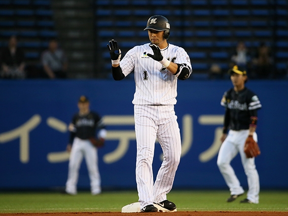 1番 清田 左翼二 1アウト満塁の1-0からレフトへのタイムリーツーベースでロッテ勝ち越し! ロ4-2ソ 2,3塁 ![]() 4
