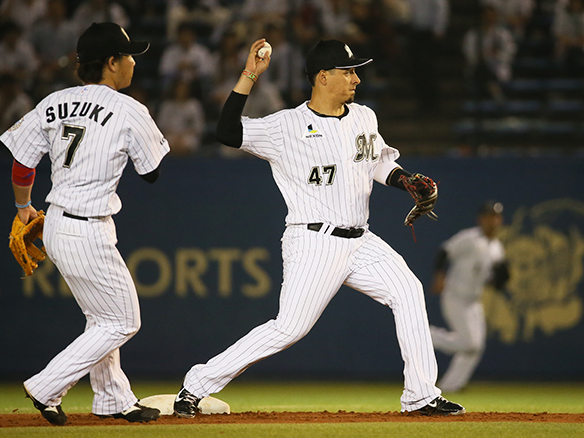 投手 涌井 投手交代:涌井→カルロス・ロサ 守備交代:ファースト大嶺翔 |