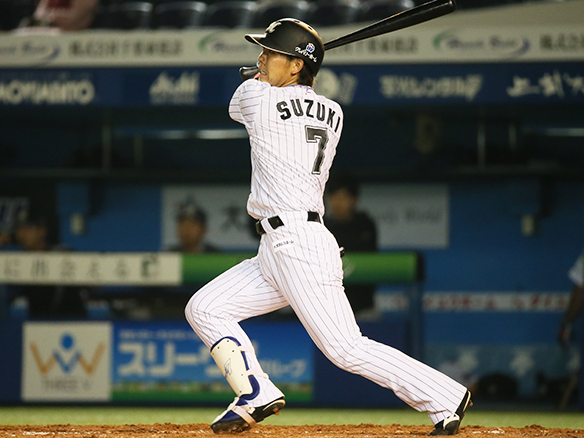 2番 鈴木 右犠飛 ランナー2,3塁の2-1からライトへの犠牲フライを放つ ロ5-2ソ 2アウト3塁 ![]() 5
