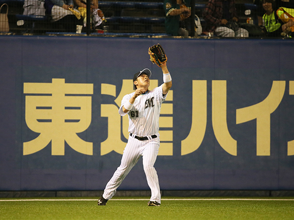 3番 角中 中飛 外角のストレートを打つもセンターフライ 3アウトチェンジ |