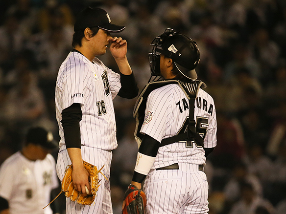 田村はマウンドに駆け寄り涌井に声を掛ける