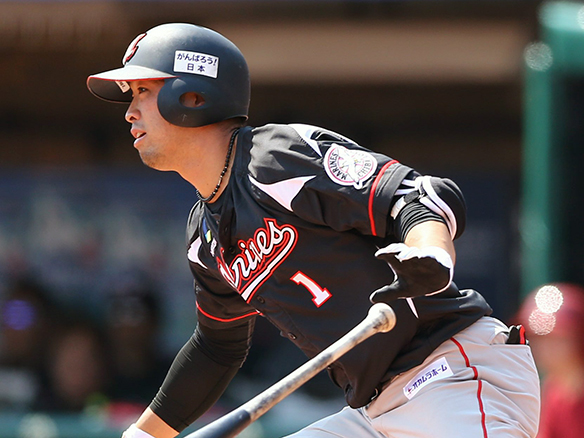 3番 銀次 左安 レフトへのヒットで出塁 1塁 |