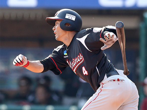 投手 大嶺祐 3番 銀次 右安 ライトへのヒットで出塁 1塁 |
