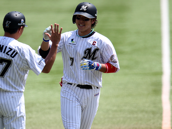 投手 大嶺祐 1番 石川 遊安 ショートへの内野安打 1塁 |