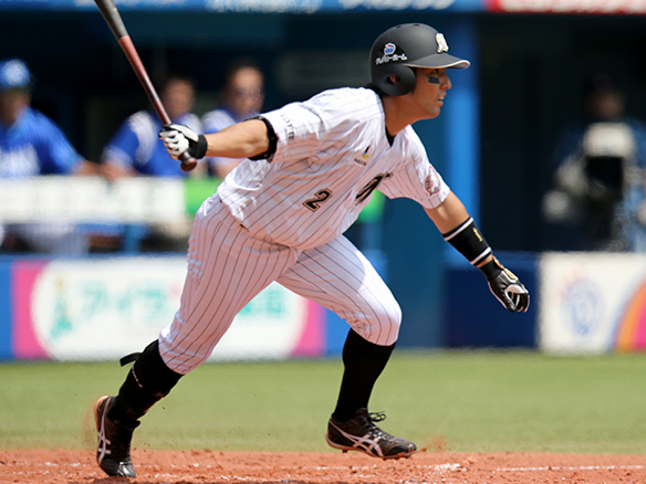 2番 白崎 中安 センターへのヒットを放つ 1塁 |
