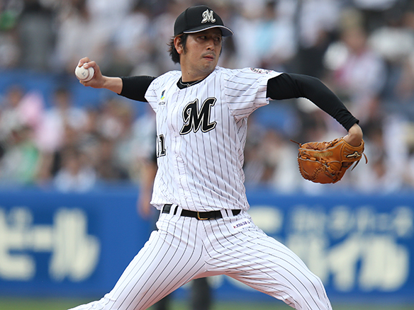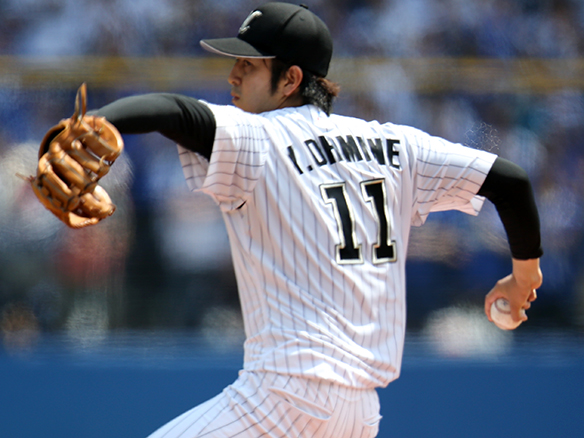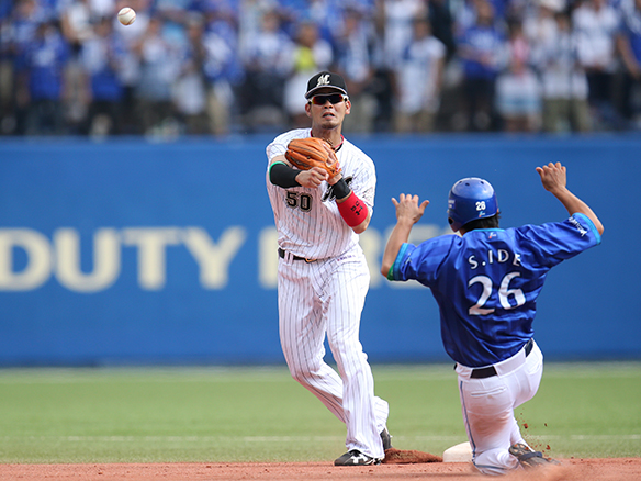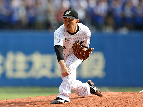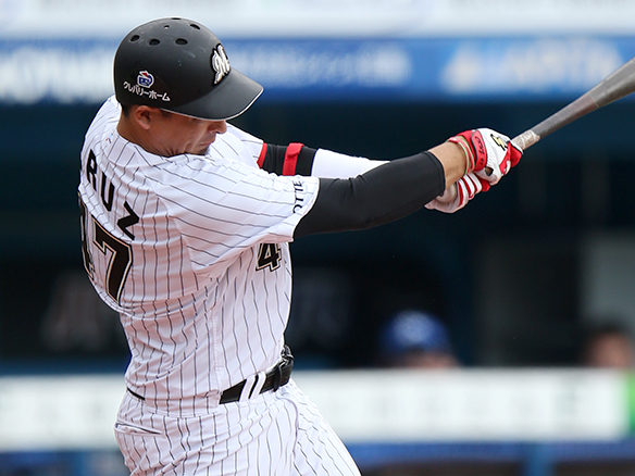投手 大嶺祐 6番 バルディリス 遊ゴ 外角のストレートを打つもショートゴロ 1アウト |