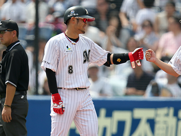8番 高城 中安 外角の真っ直ぐをセンターへ打ってヒット 1塁 |