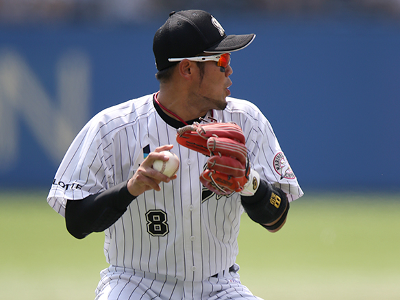 6番 根元 遊ゴ 外角のシュートを打つもショートゴロ 2アウト1塁 |