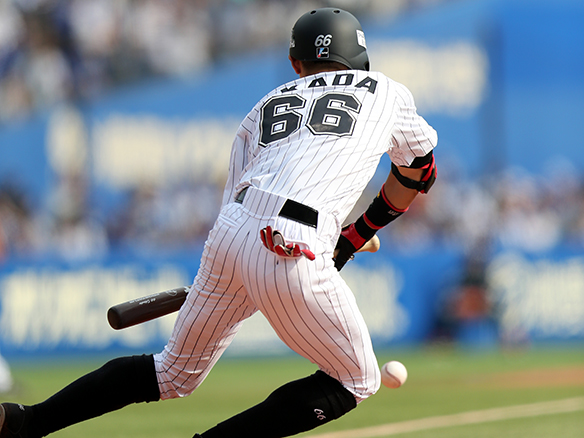 7番 荻野貴 投犠 見事送りバントを成功させる 1アウト2塁 |
