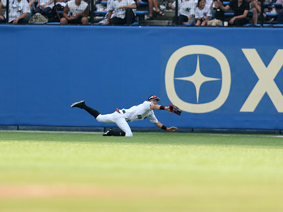 大嶺翔が後方の打球をスライディングキャッチ!!