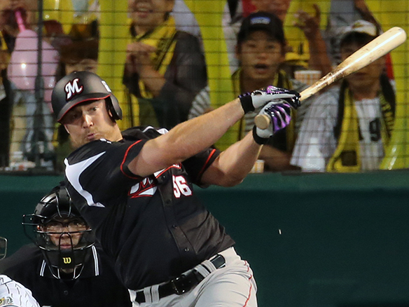 代打・ハフマンが三遊間を抜ける安打を放ちチャンス拡大!
