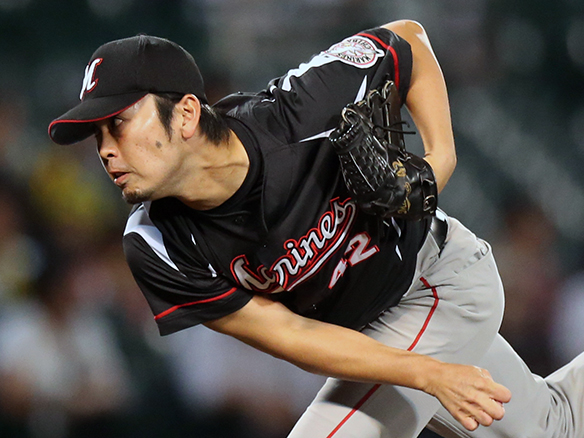 投手 岩貞 3番 角中 四球 粘りを見せて8球目にフォアボールを選ぶ 1塁 |