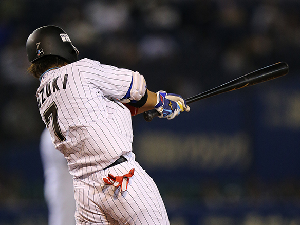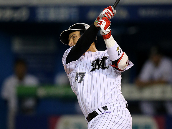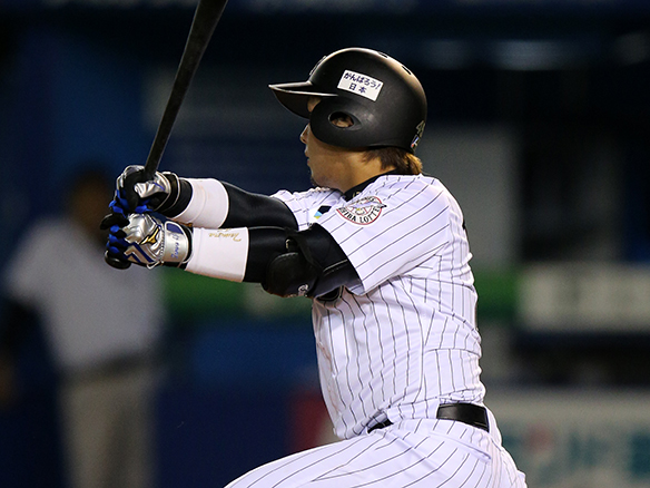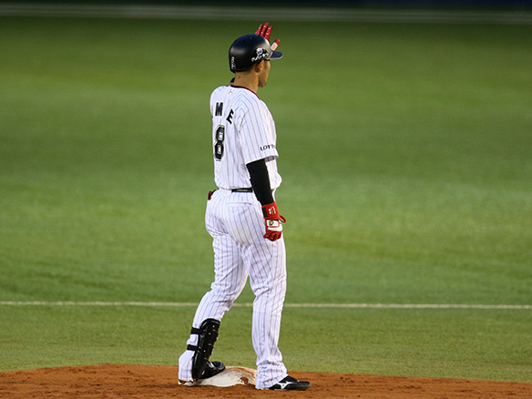 7番 エルナンデス 左犠飛 1アウト3塁の3-2からレフトへの犠牲フライを放つ ロ4-3中 2アウト ![]() 4