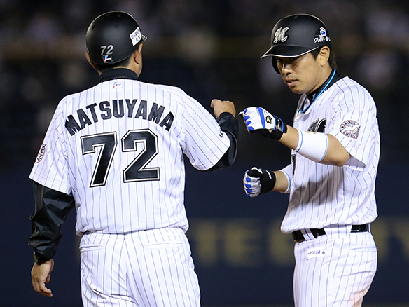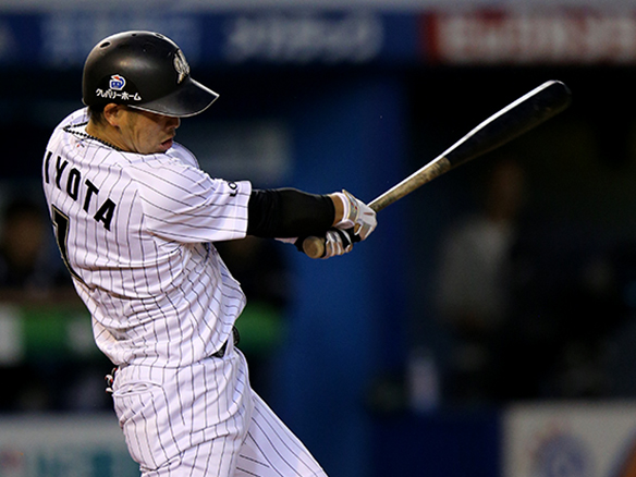 2番 サブロー 左安 レフトへのヒットで出塁 1,2塁 |