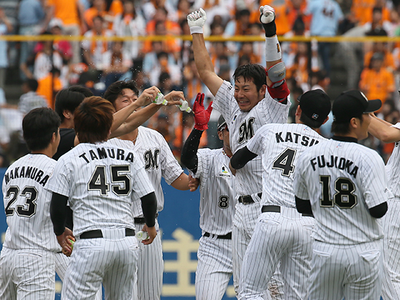 サヨナラ打の吉田を中心に歓喜のマリーンズナイン!!