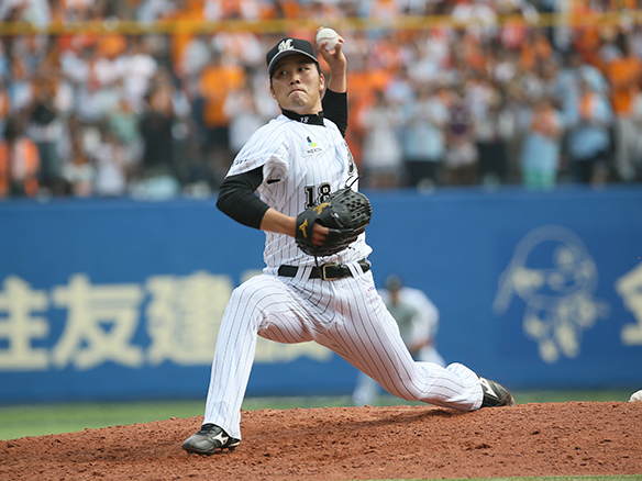 投手 大嶺祐 1番 立岡 二ゴ 外角のスプリットを打つもセカンドゴロ 1アウト |